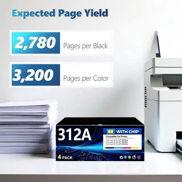 High Volume PrintingEach 312A Toner Cartridge in Black Can Print 2,780 Pages,and Each 312A Toner in Color Can Print 3,200 Pages(Based on 5% Coverage)