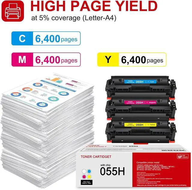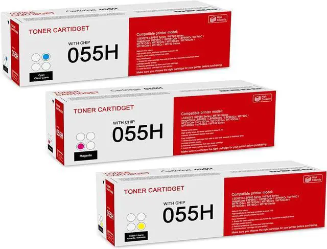 Package Content: 1 x CRG-055H Cyan Toner, 1 x CRG-055H Magenta Toner, 1 x CRG-055H Yellow Toner.[With Chip]