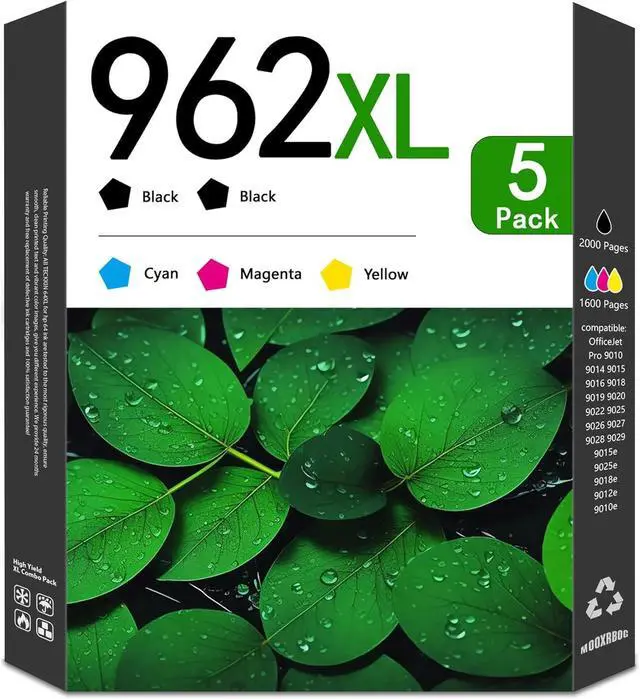 Package Contents: 5 Pack 962XL Ink Cartridges ( 2Black / 1Cyan / 1Magenta / 1Yellow )