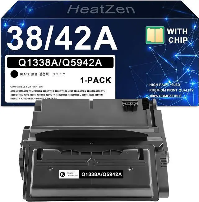 Package Includes: 1 pack 38A black toner cartridge compatible for HP 38A Q1338A 42A Q5942A