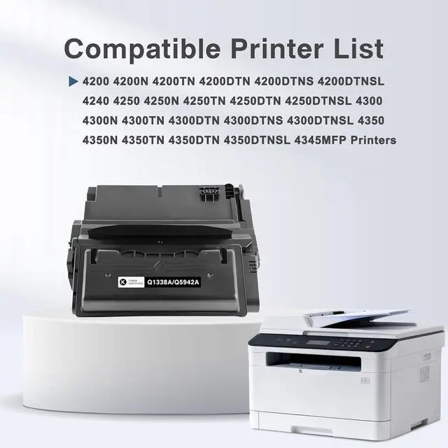Compatible Printers: Suitable for HP 4200 4200N 4200TN 4200DTN 4200DTNS 4200DTNSL 4240 4250 4250N 4250TN 4250DTN 4250DTNSL 4300 4300N 4300TN 4300DTN 4300DTNS 4300DTNSL 4350 4350N, 4350TN 4350DTN 4350DTNSL 4345MFP