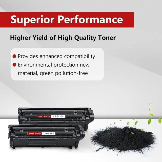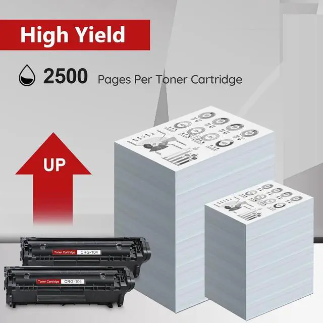 Page Yield: 104|CRG-104 Toner Cartridges can print approximately 2,500 pages for Black at 5% coverage (Letter/A4)
