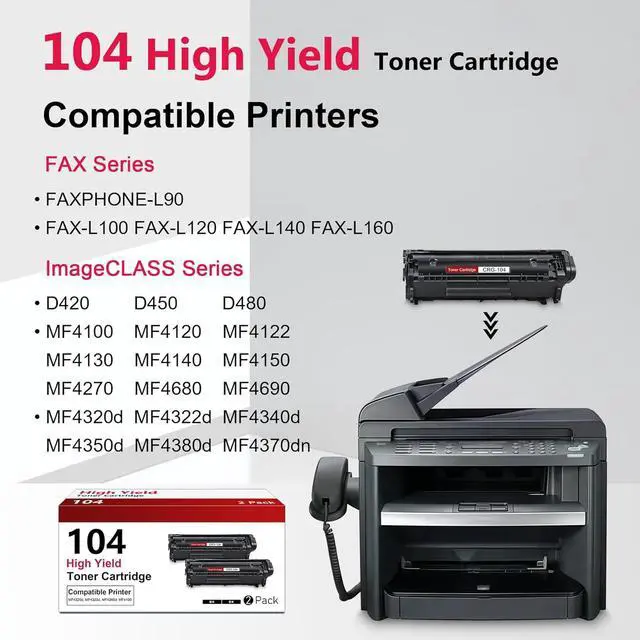 Printer Compatibility: FAXPHONE-L90; FAX-L100, FAX-L120, FAX-L140, FAX-L160; imageCLASS D420, D450, D480, MF4100, MF4120, MF4122, MF4130, MF4140, MF4150, MF4270, MF4320d, MF4322d, MF4340d, MF4350d, MF4370dn, MF4380d, MF4680, MF4690 Printers