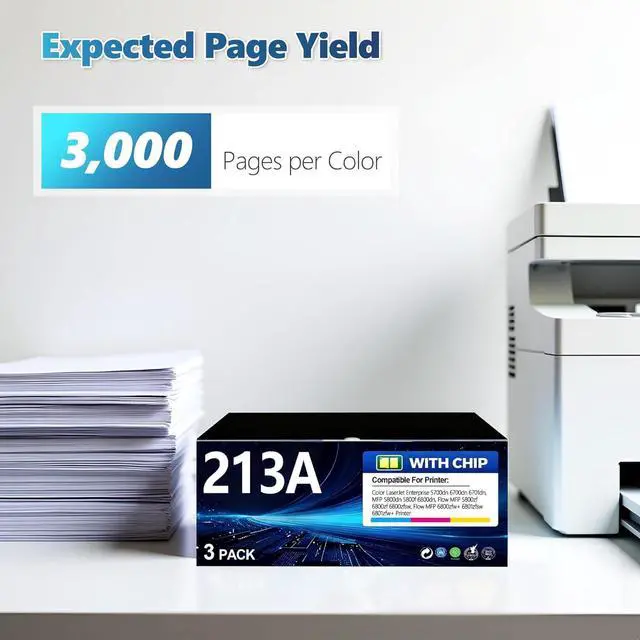 Pre-Installed Chip: Our toner cartridges come with pre-installed chips no need to transfer chips from original 213A/213X/213Y cartridges. Simply plug and print directly, saving time and avoiding chip damage
