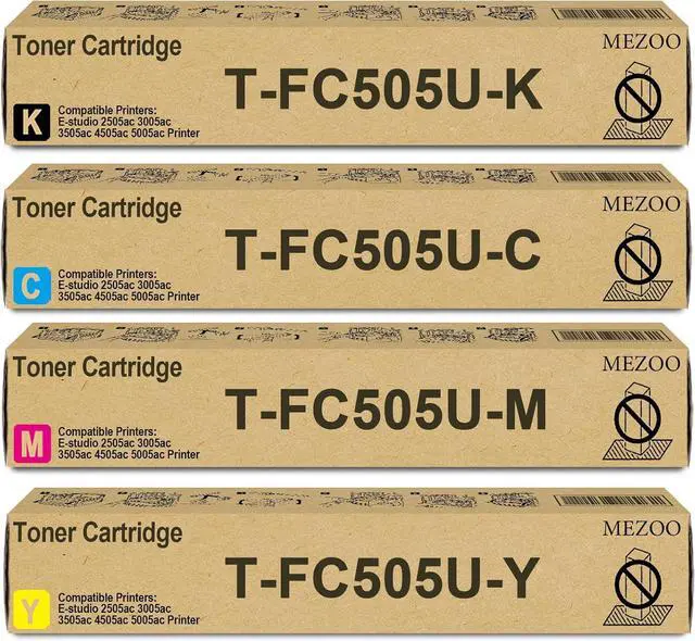 Package Contents:4 Pack T-FC505U toner cartridge(Black Cyan Magenta Yellow),No initialization requiredinstall and print immediately