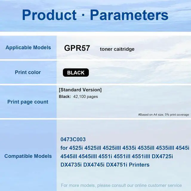 Compatible With Compatible Withfor 4525i 4525iII 4525iIII 4535i 4535iII 4535iIII 4545i 4545iII 4545iIII 4551i 4551iII 4551iIII DX4725i DX4735i DX4745i DX4751i Printer GPR-57 GPR57 GPR 57 toner cartridge