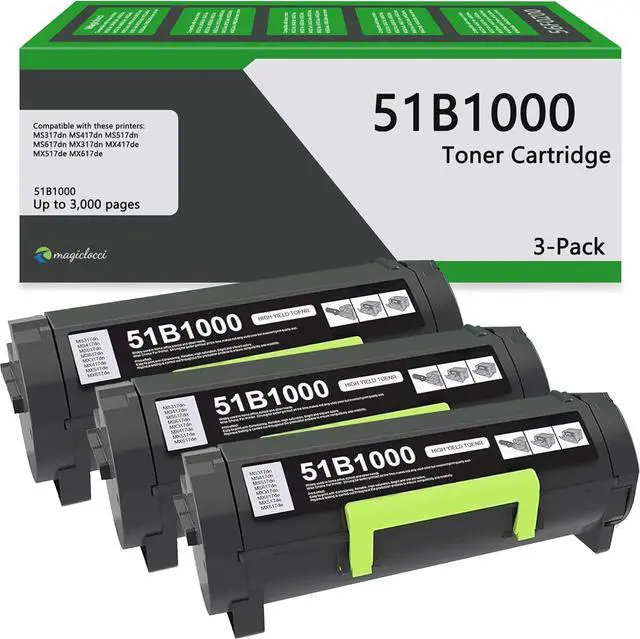 Package Contents: 3-Pack 51B1000 Toner Cartridge, Black