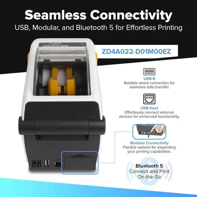 Mobile Convenience: Streamline connectivity of zebra thermal label printer with the Bluetooth-enabled setup app for Android and iOS, providing efficient configuration and control for a seamless printing experience