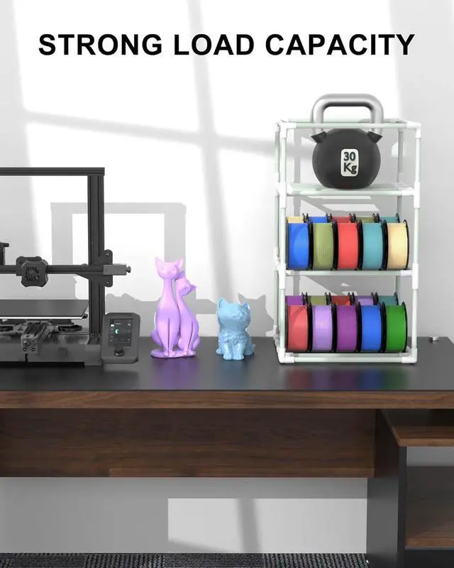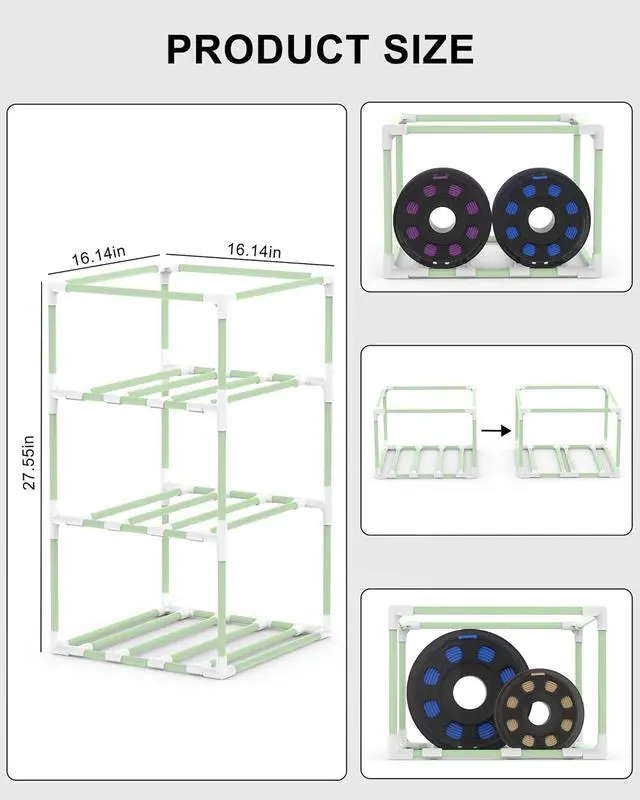 Maximize Filament Organization: Engineered with a modular, multi-tiered and dual-row layout, this storage rack offers substantial capacity for your 3D printing materials. Each level is designed to accommodate several spools, and its universal compatibility ensures a neat and efficient workspace for various spool types