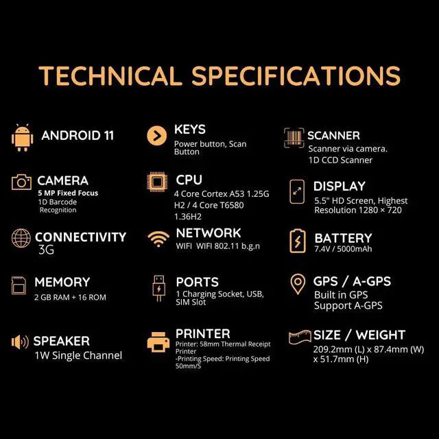 Step into a new era of efficiency with our state-of-the-art POS terminal, featuring an option between two powerful processors: the 4 Core Cortex A53 1.25GHz H2 or the 4 Core T6580 1.36GHz H2. Whether youre processing a high volume of transactions, managing intricate software applications, or running multiple tasks simultaneously, this device is engineered to handle it all with unparalleled speed and reliability.