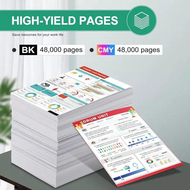 Estimated print yield of 48,000 pages per drum unit, Based on A4 paper on 5% coverage.