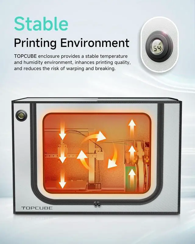 Improve Print Quality with Consistent Temperature Control: The TOPCUBE enclosure creates a stable temperature and humidity environment, enhancing printing quality and minimizing the risk of warping and breakage. Following extensive long-term testing, the internal temperature WILL NOT exceed 40 when using the enclosure, eliminating the risk of damaging the printer motherboard.