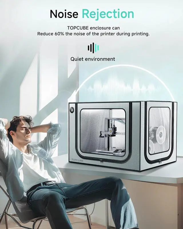 Noise Isolation for Quiet Creations: The fully enclosed 3D printer cover effectively blocks printing noise transmission on all sides. Through testing, the noise level can be reduced from 60 decibels to 40 decibels, enabling a quieter printing experience.