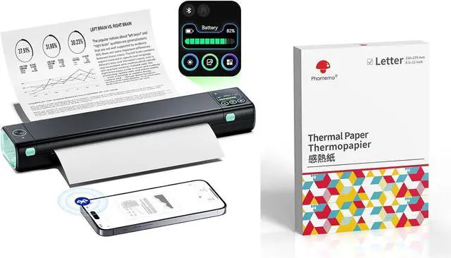 Portable and Compact: Stay productive anywhere with the Phomemo M08D Portable Printer incredibly portable and lightweight design. Weighing just 1.5lb and boasting a compact size, it slips effortlessly into your backpack, briefcase, or car. Enjoy significantly quieter operation thanks to a 30% noise reduction achieved through optimized motor algorithms and a refined print head. Power through up to 150 pages of continuous printing on a single charge with the robust built-in battery, making this yo