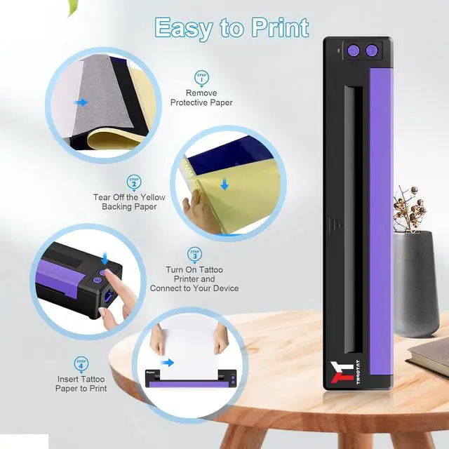 Professional Tattoo Transfer Solution: TATOPRT P19 wireless tattoo stencil printer is designed for beginners, professional tattoo artists, and temporary tattoo enthusiasts. Eliminate tedious hand-drawing steps - simply print your favorite patterns and transfer them to skin for high-quality temporary or permanent tattoos.