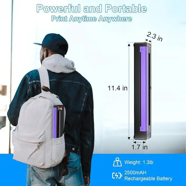 Portable Mobile Studio: P19 tattoo transfer printer features a compact 11.4x2.3x1.7" design weighing only 1.3 lbs, equipped with a high-capacity 2500mAh battery (300 prints per charge), enabling professional-grade tattoo creation anywhere with unmatched portability.