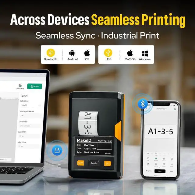 Powerful Mobile App Features The MakeID App includes 48 templates, 200+ icons, 20+ fonts, supports barcodes & QR codes, and allows bulk data import for fast and efficient on-site labeling.