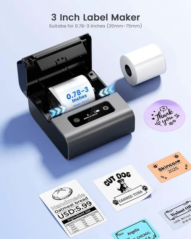 Versatile 3-Inch PrintingPrint labels from 0.78 to 3.14" wide (20-80mm) with no ink or toner needed. Compatible with 50+ thermal label types for barcodes, QR codes, addresses, products, and organization - perfect for small business, office, and home use.