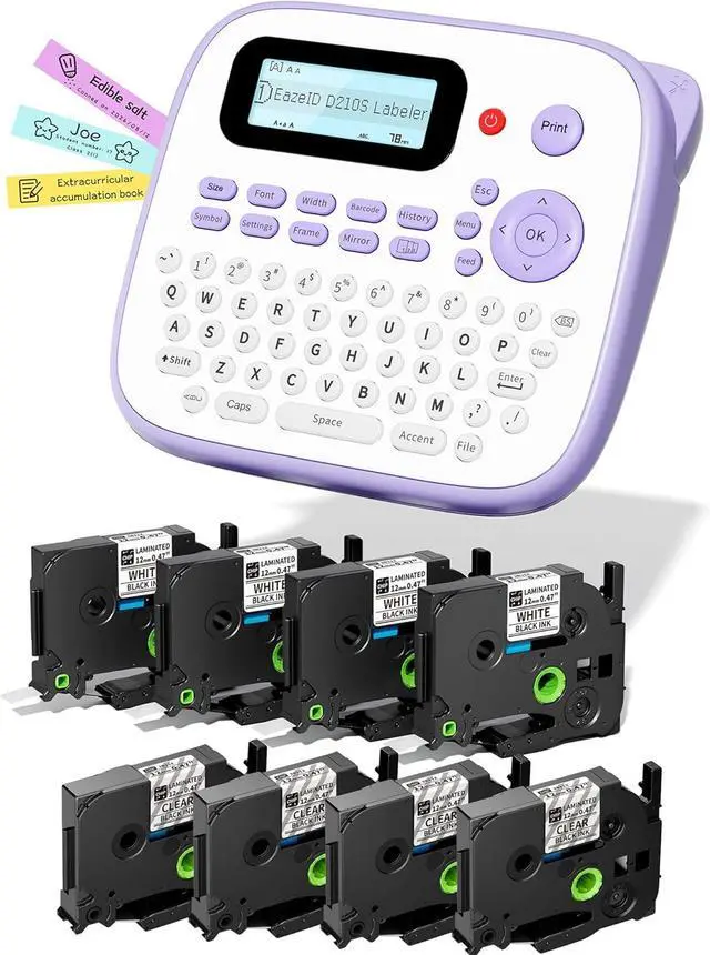 Practical Gift for Everyone : EazeID D210S purple label maker bundle with 8PK TAPES White is the ultimate practical gift solution. It's a clever tech gift that creates personalized touches for anyone on your list. It serves as thoughtful teacher gifts for the classroom, appreciated office gifts, or handy home gifts for organizing enthusiasts. Its cute design, especially in options like purple, makes it a delightful kids label makerthat encourages organization from a young age