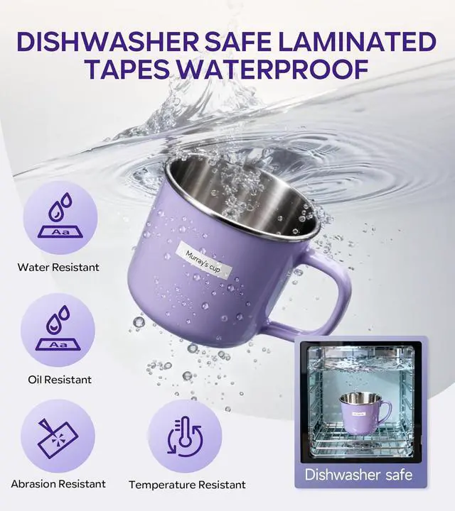 Waterproof Labels for Anywhere : The Laminated Label Maker creat labels waterproof also compatible with brother p-touch label maker. The included desktop label maker waterproof labels feature a robust laminate that withstands water, fading, abrasion, and extreme temperatures. They are perfect for label maker for jars in the kitchen, organizing school supplies for teachers kids, or identifying items in the garage, ensuring your labels stay clear and adhered through everyday use and cleaning