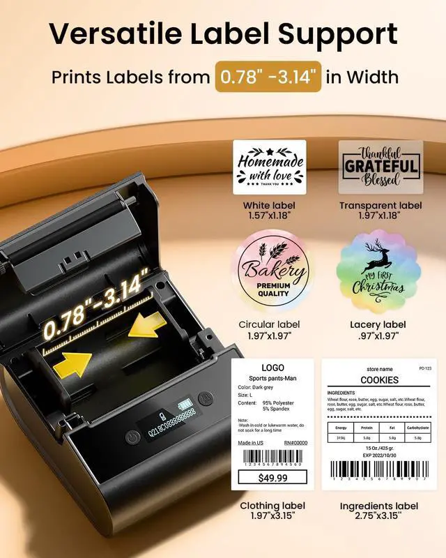 M260 phomemo label printer can print labels ranging from 1/2 to 3 inches wide.It supports various styles of labels with names,barcodes,QR codes,text,images,etc.It's ideal for labeling jars,bottles,storage boxes,food containers,product information,shipping address,and more.