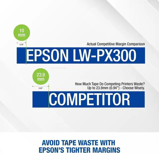 Epson's LW-PX300 has tight margins of 10mm compared to 24mm on competitors. Save money and material but have small label margins.
