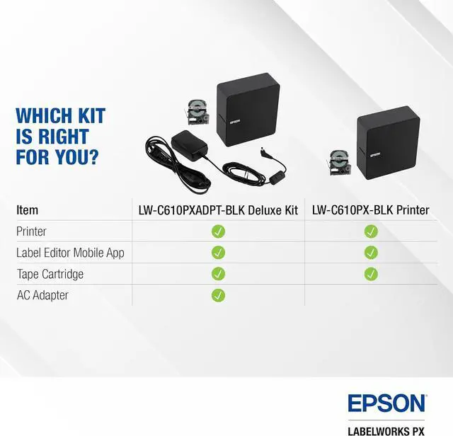 Max Tape Width1" (24MM)DPI360Cutter AutoMargins10MMBatteries6AA - Not IncludedMax Print Speed9mm/sAppLabel Editor MobileConnectivityBlueToothMax Heat Shrink Tape Width14mm (9/16") - 214ST**** Epson LABELWORKS LW-C610PX Portable Wireless Label Maker Machine The Epson LabelWorks LW-C610PX Home & Hobby Label Printer Printer Unboxing Video Great Resolution App Connectivity Ribbon Tapes Personal or Professional Your One-Stop Labeling Shop LW-C610PX Home & Office Label Maker Specifications
