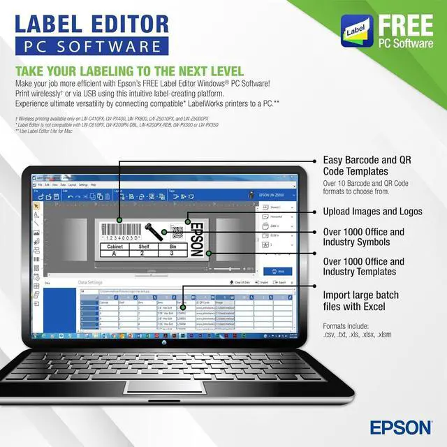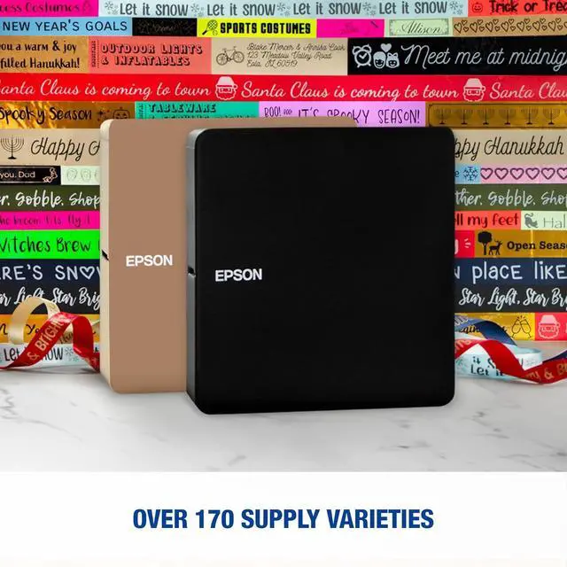 1App Connectivity 2Home Organization 3Various Label Widths4Custom Gifts5Key Features This printer is compatible with all Epson LABELWORKS label tapes up to 1" (24mm) and prints with 360DPI resolution for crystal clear labels.