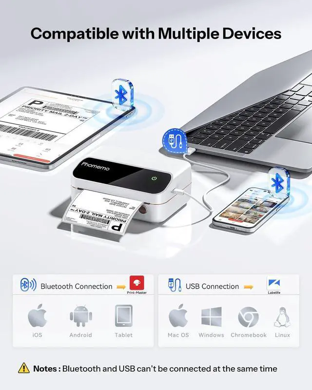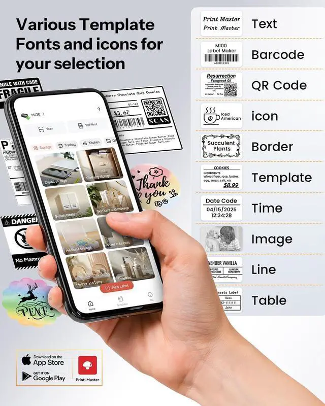 Powerful Multiple Templates App-The Phomemo-M420 Bluetooth Label Printer comes with multiple label templates for mobile phones, and you can create your own custom templates in the "Print Master" app. It supports label editing and typesetting, as well as Excel batch printing to boost work efficiency.When connected to a PC via USB for printing, you can also freely edit and batch-print labels in the "Labelife" app. Please refer to the tutorial in the user manual to install and set up the app before use for an optimal printing experience.
