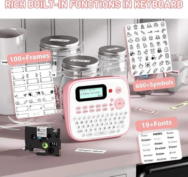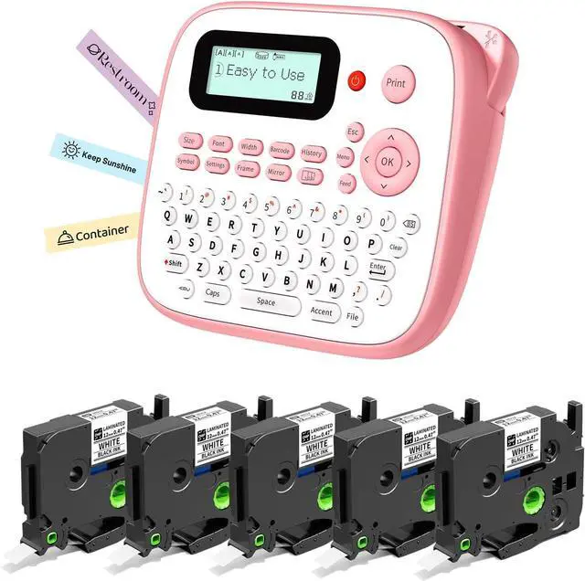 1Home&Office Organization2Classroom&Gift Must Haves EazeID D210S Pink Label Maker Machine with Tapes Handheld Label Maker with Keyboard Multiple Fonts Frames Symbols-DIY Your Labels Durable and Long-lasting BZ 12mm 0.47 Laminated White Label Tape Waterproof EazeID Label maker with Multiplecolor Tapes options
