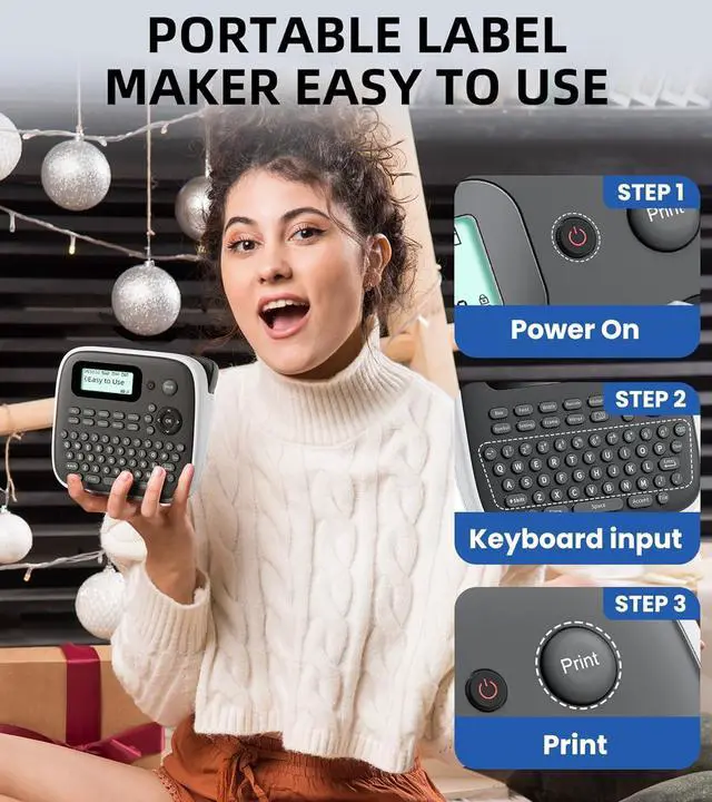 1Home&Office Organization2Classroom&Gift Must Haves EazeID 2026 New Version D210S Label Maker Machine with Tapes Handheld Label Maker with Keyboard Multiple Fonts Frames Symbols-DIY Your Labels Durable and Long-lasting BZ 12mm 0.47 Laminated White Label Tape Waterproof EazeID Label maker with Multiplecolor Tapes options