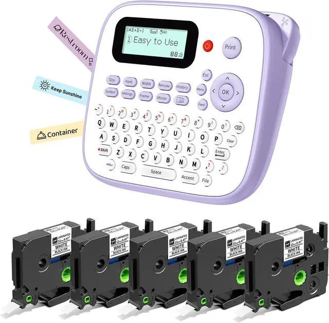1Classroom&Gift Must Haves2Home&Office Organization EazeID 2025 New Version D210S Label Maker Machine with Tapes Handheld Label Maker with Keyboard Multiple Fonts Frames Symbols-DIY Your Labels Durable and Long-lasting BZ 12mm 0.47 Laminated White Label Tape Waterproof EazeID Label maker with Multiplecolor Tapes options