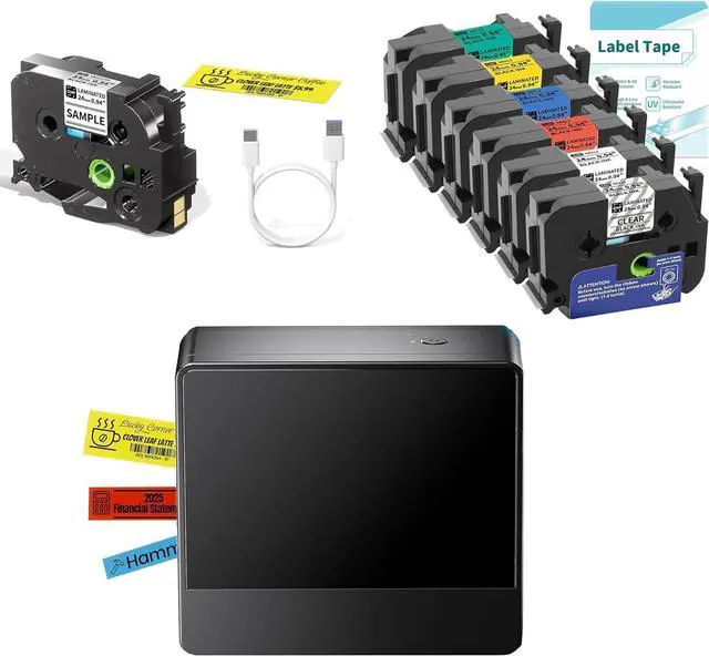 Bluetooth Label Maker Machine with 7PK 24mm Color Tapes, P780BT Rechargeable Wireless Label Maker with 1 Inch Wide Labels-Waterproof, Type-C Charging for Home Office Organization
