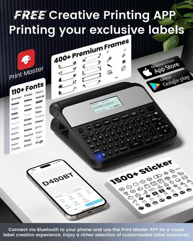 : With 203DPI high-resolution printing, this large print label maker machine produces crisp, professional labels with up to 5 lines of text, 100+ fonts, 100 premium frames, and 1000+ symbols. Perfect for retail, craft businesses, and personal use, , it also can be practical gifts for teachers kids lovers friends and organized people, the complimentary creative printing app simplifies the design of unique labels with its built-in features