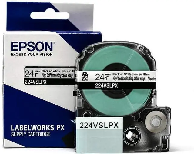 DIMENSIONS AND COLOR - This vinyl industrial tape is 1" (24mm) in width and 26.2 ft in length. The label maker tape features a 1/4" white area for for printing and 3/4" clear protective overwrap. Works with Epson LABELWORKS PX and K-Sun printers, more listed below and in product description.