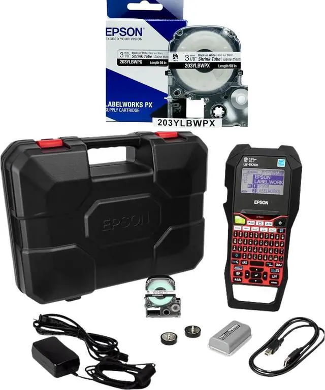 LABELWORKS Epson LW-PX700PCD Industrial Label Maker Kit and 203 Heat Shrink Tube AWG 16-22, 1/8" (3MM) Wide, 8 ft (98") Bundle