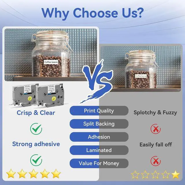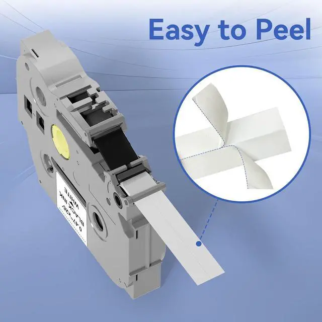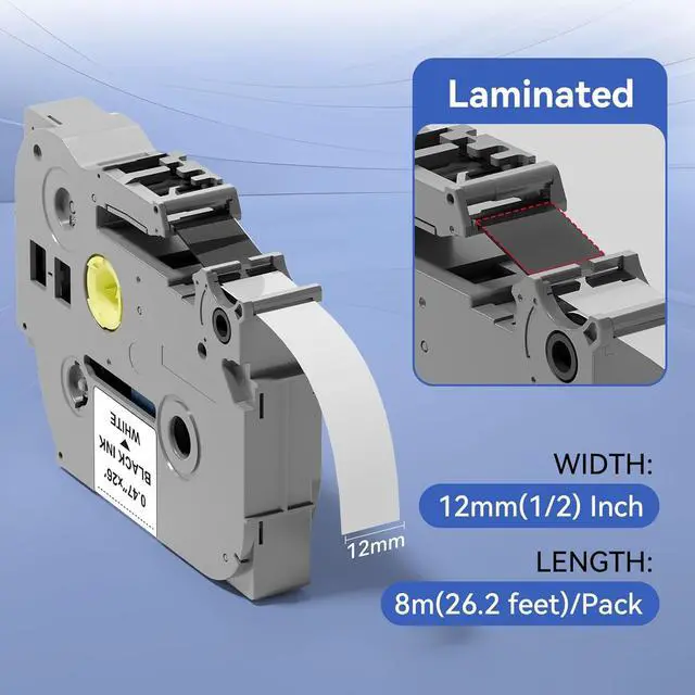 [Strong Adhesion & Reusability]Replacement for Brother TZe/TZ 12mm (0.47") Laminated White Tape, Compatible with P-Touch Label Tape. Split-Back Design Enables Easy Peel & Stick on Various Surfaces