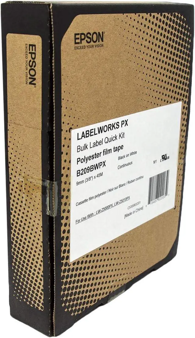 BULK QUANTITY - This label tape comes in a continuous bulk size, and is perfect for industrial and warehouse uses. It is compatible with cost saving features such as auto tape rewind and corner trimming which save users a significant amount of time and money. Epson's unique cartridge design pre-matches the ribbon and supply, eliminating the guesswork and hassle, making loading the printer easy and fast.