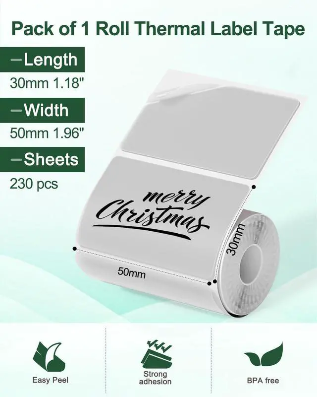 Product Description: 1.96"x1.18"(50x30mm) Transparent Label thermal printer paper, 230 labels/roll.
