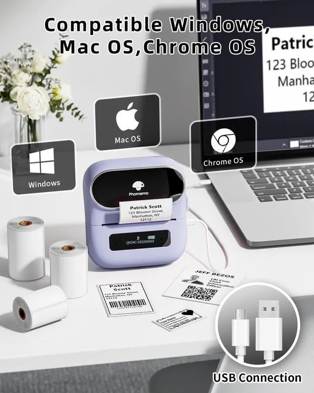 High Compatibility - Phomemo M220 bluetooth label maker not only supports iOS, and Android mobile phone by Bluetooth connection, but also supports USB connection for Mac OS and Windows 7.8.10. 11(WARNING: For your better experience, please be sure to watch the software installation tutorial on the page).