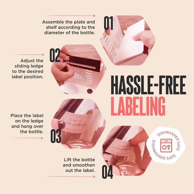 Easy-to-Store Label Applicator - Sleek, dishwasher-safe & made of powder-coated steel, it can be disassembled easily. So, you can put it inside any drawer when not in use. Has anti-slip rubber feet.