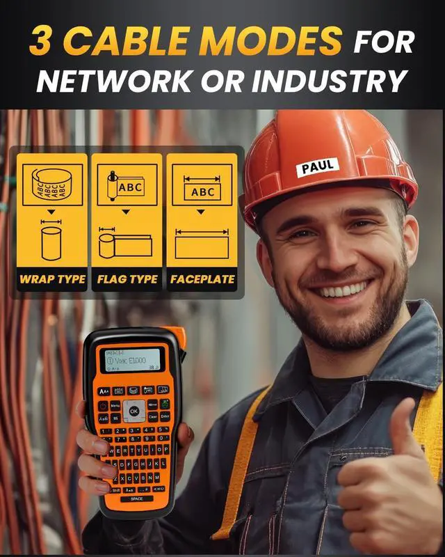 No More Cable Chaos: Vixic E1000 industrial label maker support 3 smart cable settings: Wrap mode, flag mode, and faceplate mode for fast, organized wire management. Besides, the label maker waterproof labels comes with laminated white tape that can withstand temperature, fade, wat