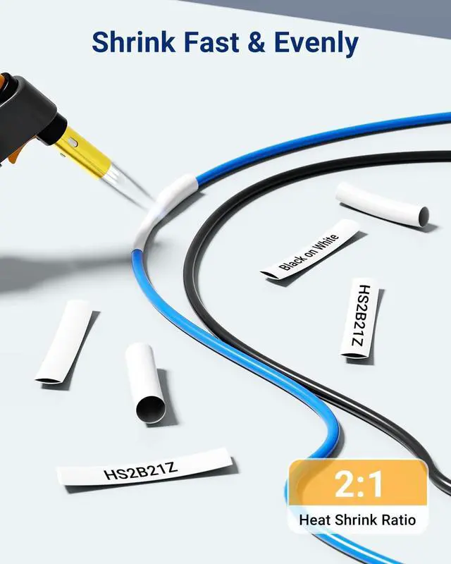 Vixic Heat Shrink Tapes: The official heat shrink tubing label for E1000 label maker. Simply use mirror mode printing, then pass through the cables or wires and shrink. They will not slip, slide, or fall off