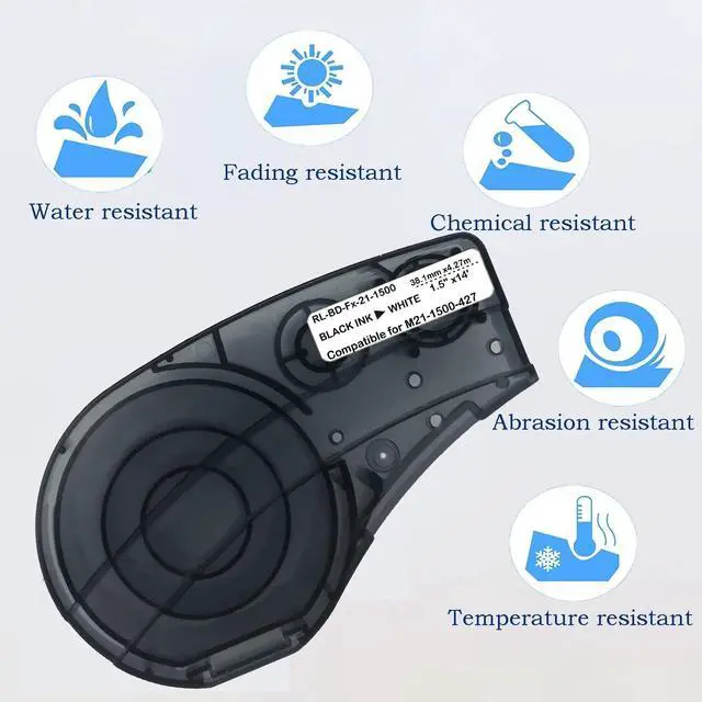 Package includes: 2-Pack compatible M21-1500-427 label tape Work with BMP21-PLUS/LAB, compatible with M210 and M211 Label Maker.