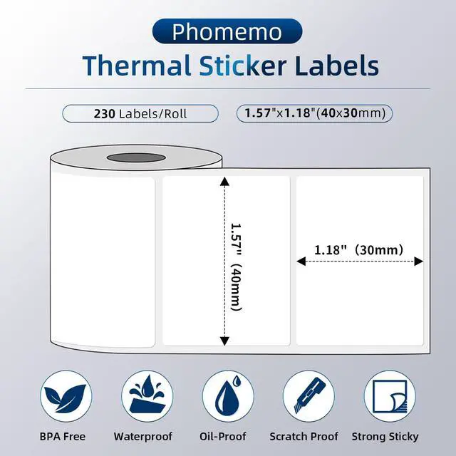 Label Features- Phomemo thermal labels are tough and long-lasting, BPA-free, waterproof, oil-proof, scratch-proof, easy to store, and cost-effective. Clearly Printing- Direct thermal print technology provides clear lettering without messy, expensive ink or toner. No ink is required because your label maker is a direct thermal printer and save money.