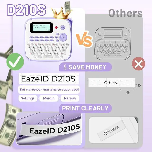 • Customization and Creativity : The D210S labeler offers a vast selection of over 800+symbols, 100+ frames, and 16 font options. It can print barcodes, support up to 4 lines of text, and adjust font sizes to large, medium, or small. This makes your labels not only functional but also visually appealing labels designed to inspire creativity, the D210S ensures that you can create personalized and professional-looking labels effortlessly