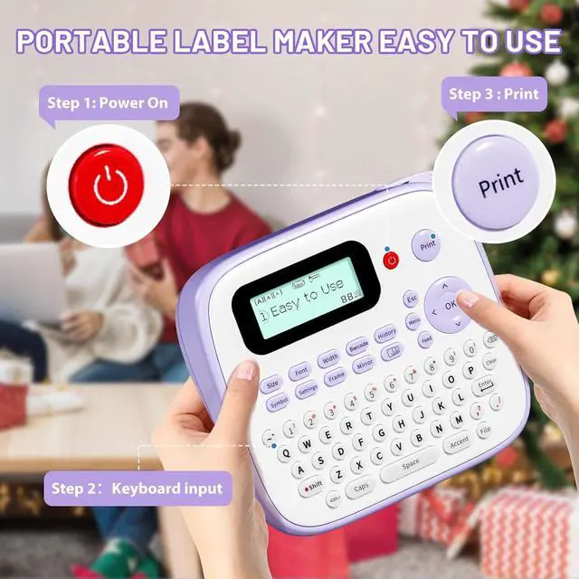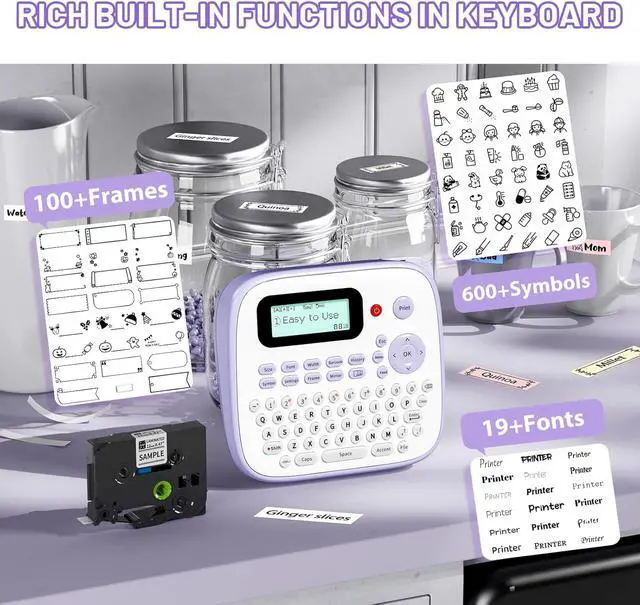 User-Friendly Design : The portable label maker machine with tape with one-touch keys provide quick access to fonts, symbols, frames, and templates, A display screen lets you preview labels before printing, ensuring accuracy, easy-to-use interface simplifies the labeling process