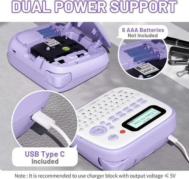 Portability and Power Options : The D210S Label Maker with keyboard, lightweight and portable design for use on the go or at your desk, powered by 6 AAA batteries or an stay powered with an Type c cable