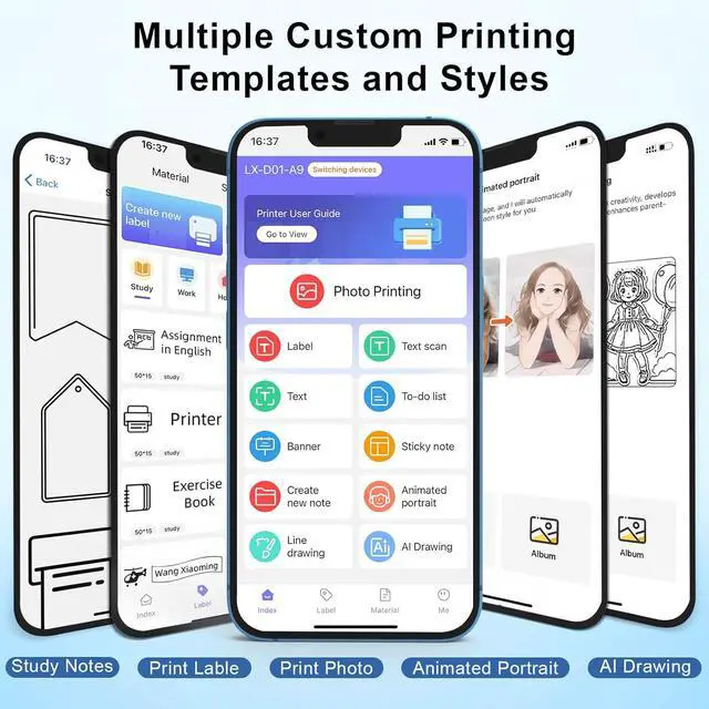 Advanced App Features Bluetooth Label Printer: Stable Bluetooth connection for seamless label printing. And powerful App Functionality: supports a wide variety of styles, fonts, sizes, and patterns, allowing you to create unique, creative labels tailored to your needs. Whether you are labeling products, organizing your office, or adding a personal touch to your belongings, our thermal printer offers unmatched versatility and ease of use.