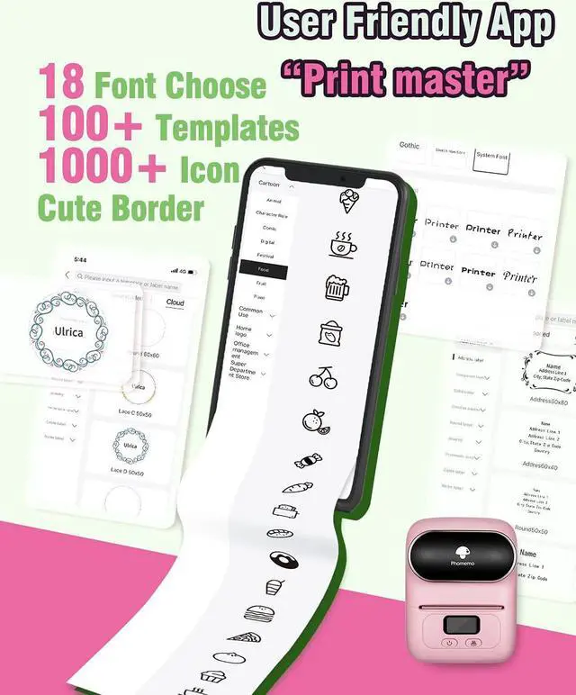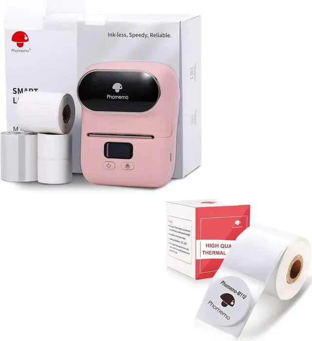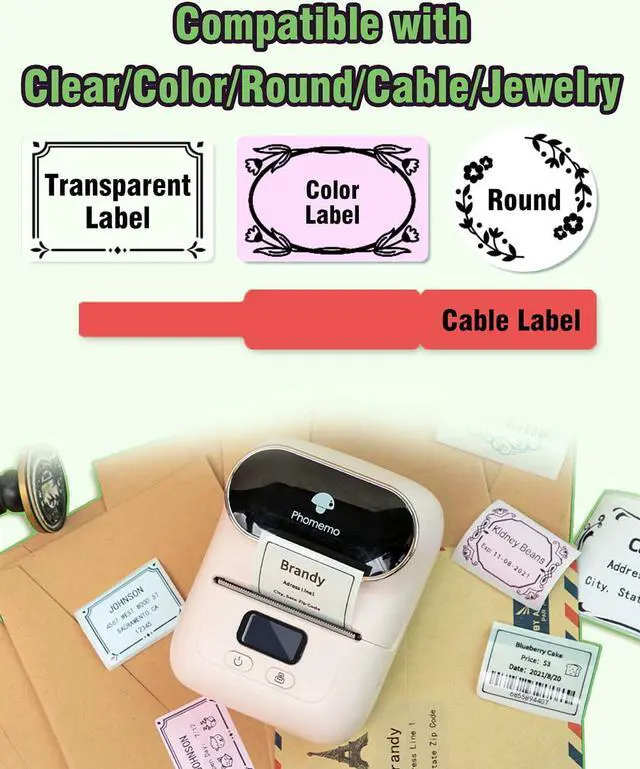 Multifunction Thermal Label Maker- Phomemo-M110S label printer Black and white print out, print die-cut labels. Label width range: 20mm~50mm. The mini label printer has wide uses in Clothing, Food, Telecommunications, Jewelry, School, Home Use, and so on. Not for shipping labels.